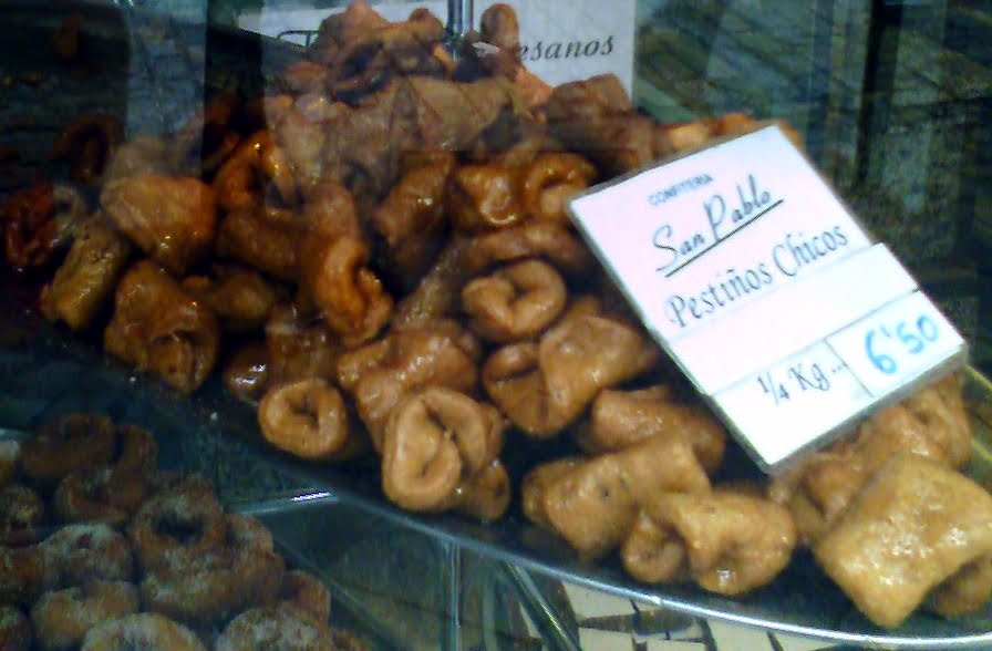 Andalusian desserts are heavily influenced by medieval Andalusian cuisine. Notable dishes include pestiños (a deep-fried pastry bathed in honey), alfajores, amarguillos (a form of almond macaroons) from Medina Sidonia, the polvorones (almond cookies of Estepa), lard bread, wine doughnuts, and torrijas.